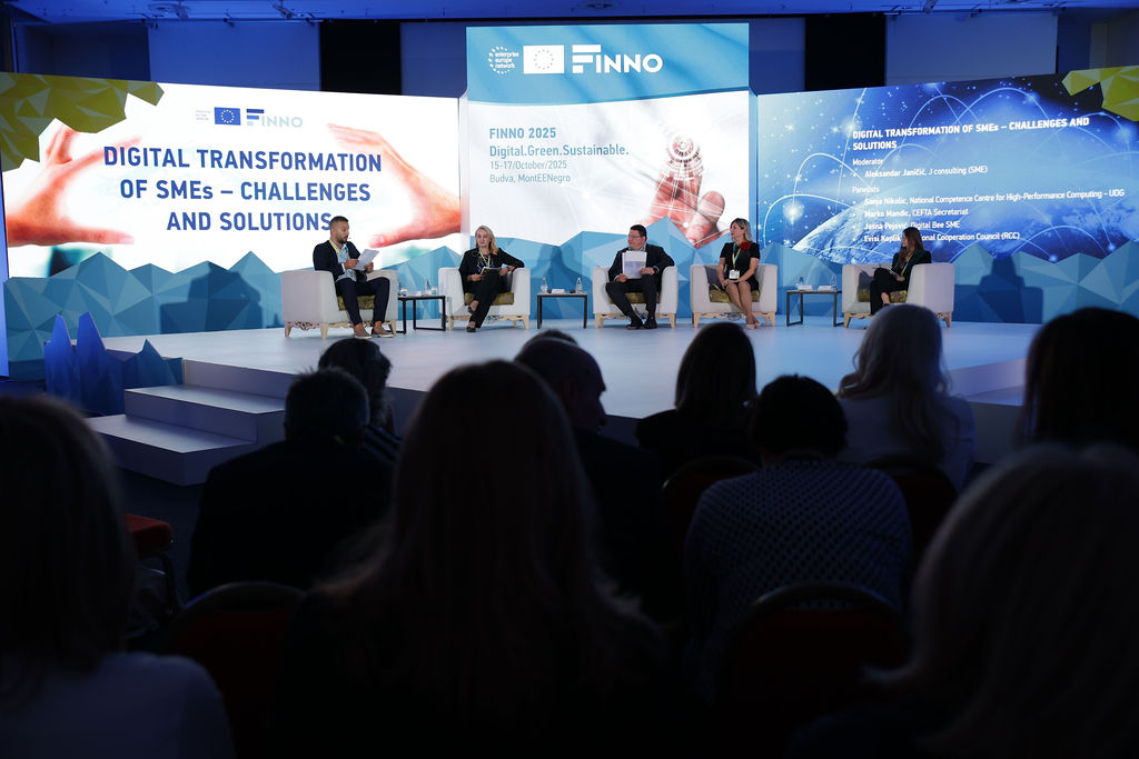 The Enterprise Europe Network (EEN) Consortium in Montenegro – MontEENegro, composed of the Ministry of Regional Development and Cooperation with NGOs, the Faculty of Mechanical Engineering of the University of Montenegro, the Chamber of Economy of Montenegro and the Business Start-Up Center Bar, successfully hosted the FINNO 2025 Annual Conference: Digital. Green. Sustainable.